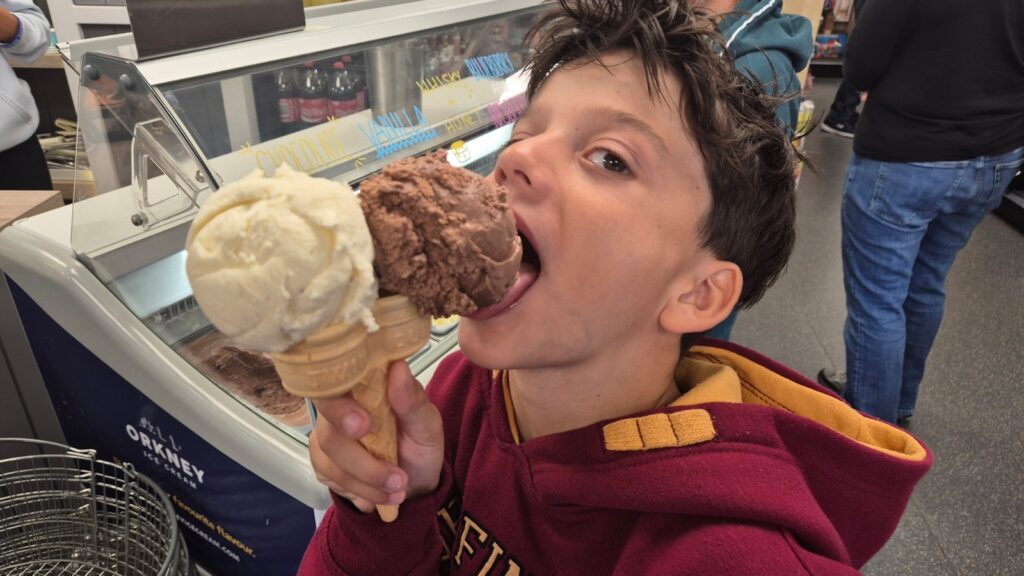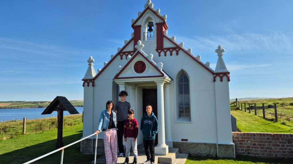 Unsere Kids haben sich auch an der Eiscreme erfreut, wofür die Orkneys berühmt sind. Und wir haben natürlich auch die Italian Chapel besucht – ein Juwel, welches von italienischen Kriegsgefangenen im zweiten Weltkrieg errichtet worden ist.