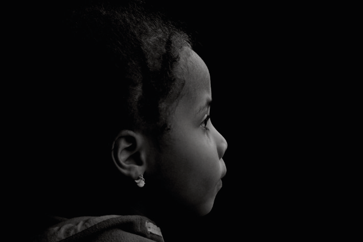 Absichtliche Unterbelichtung lenkt den Blick auf Gesicht und Ohrring.