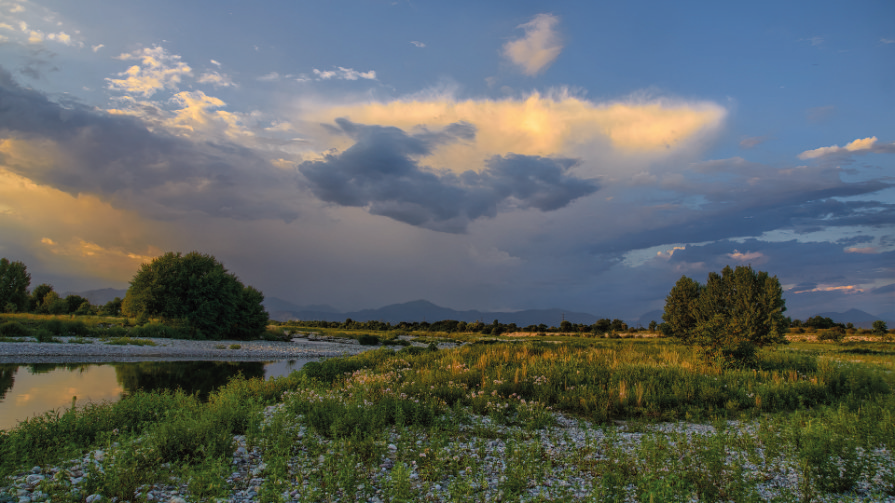 Landschaften unter wolkenlosem, blauem Himmel wirken oft etwas langweilig – Ausnahmen bestätigen die Regel. Wolken sorgen für Abwechslung. Vor allem, wenn sie dramatische Formen und Farben annehmen. Man muss aber sehr darauf achten, dass sie nicht überbelichtet werden und ins komplette Weiß „ausfressen“.