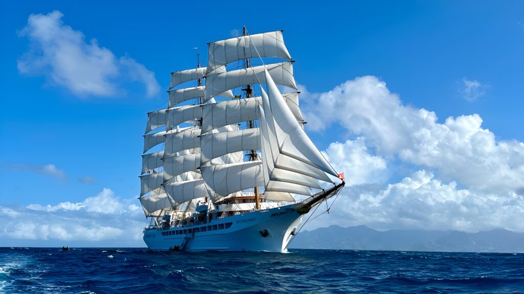 Im Hafen von Colón liegt die Sea Cloud für die Reise bereit.