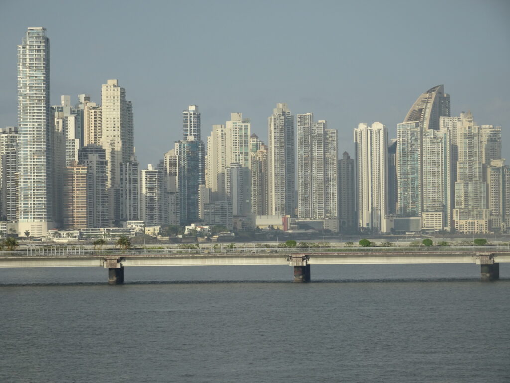 Am folgenden Tag wird der Panamá Kanal durchfahren. Der Kanal durchschneidet die 80 km breite Landmasse zwischen Atlantik und Pazifik. Der Bau dauerte insgesamt 33 Jahre. 1903 unterstützte die US-Regierung Panamas Unabhängigkeitskampf und erhielt dafür das exklusive Nutzungsrecht für die Kanalzone. 75 000 Arbeiter waren an diesem gigantischen Bauwerk beteiligt, 22 000 Menschen sind an Malaria und Gelbfieber gestorben. Nach der Eröffnung 1914 blieben die Amerikaner bis 1999. Nach einem weiteren Ausbau können nun seit 2016 auch Frachter, die bis zu 14 000 Container an Bord haben, passieren. Jährlich sind das ca. 15 000 Schiffe.