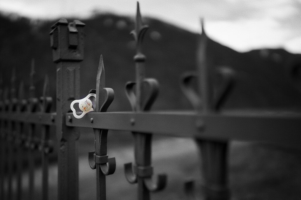 Das Bild des verlorenen und wieder gefundenen Schnullers zeigt mehrere Möglichkeiten, das Hauptmotiv hervorzuheben. Einmal wurde bei der Aufnahme bewusst mit offener Blende fotografiert, um die Schärfentiefe möglichst auf den Schnuller zu beschränken. Die Farben der Umgebung hatten jedoch immer noch zu sehr abgelenkt, weshalb ich das Foto nach Schwarzweiß umwandelte und nur die winzige Zeichnung am Schnuller in Farbe beließ. Zudem hatte ich Kontrast und Helligkeit der Umgebung etwas verringert.
