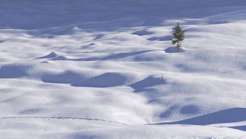 Manchmal liegt der Reiz eines Motivs darin, dass nüchtern betrachtet fast nichts zu sehen ist. Der Mensch ist mit den Augen ständig auf der Suche nach Mustern und Strukturen, auf denen er den Blick ruhen lassen kann. Das kann zum Beispiel eine monotone Landschaft sein, in der sich ein kleines Objekt befindet.