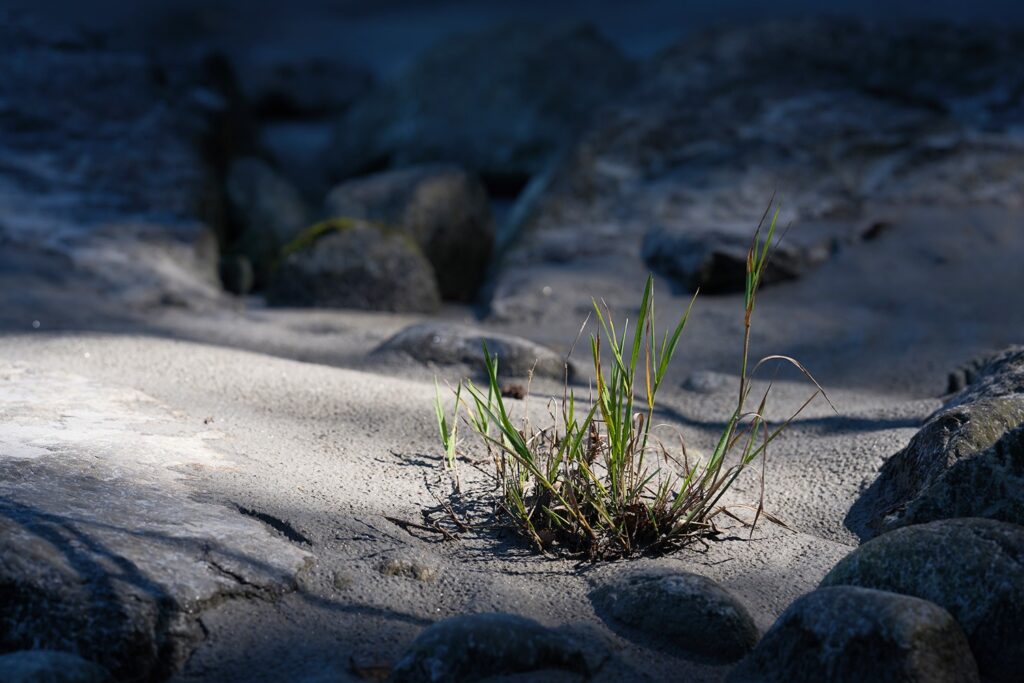 Neben Farbkontrasten können auch Helligkeitskontraste einen gewissen Reiz ausüben. Beim obigen Bild sorgt der Sonnenstrahl dafür, dass sich der sonst so unscheinbare Grasbüschel hervorhebt. Auch Strukturen und Muster werden bei starken Kontrasten meist besser wahrgenommen. Jedoch ist es immer die richtige Dosis, welche über Erfolg oder Misserfolg entscheidet. Das ist einerseits Geschmackssache, andererseits aber auch Feingefühl und Erfahrung.