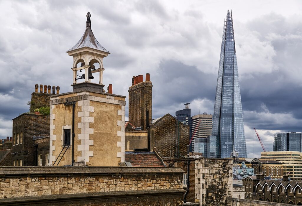 Das folgende Bild zeigt einen Blick vom uralten „Tower of London“ in Richtung ultramoderner Glasfassade des „Shard“.