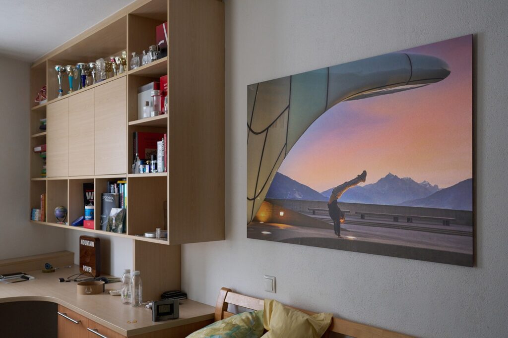 Ein großer Vorteil von Wandbildern gegenüber anderen Präsentationsmedien ist der, dass man flexibler ist bei der Wahl des Formats. Je nach Motiv ist die Wirkung eine gänzliche andere, ob das Bild im üblichen 3:2-, DIN-Format, quadratisch oder ganz schmal im Panoramaformat präsentiert wird. Ein quadratisches Bild passt zum Beispiel sehr gut zu statisch, ruhigem Inhalt. Auch Hochformat stellt kein Problem dar im Gegensatz zu einer Präsentation auf Leinwand.